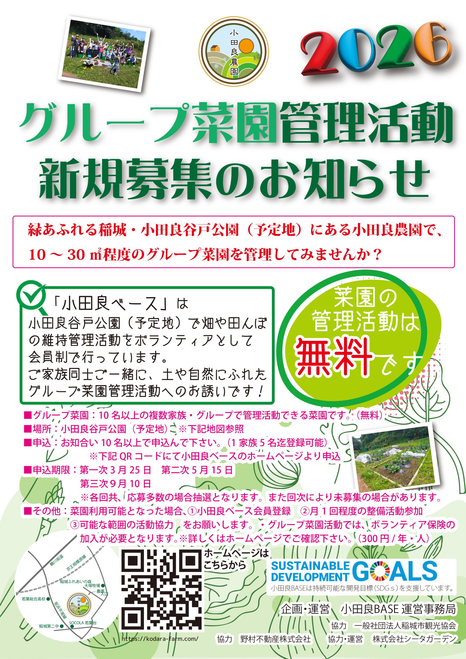「2026年グループ菜園管理活動新規募集開始」 イベント 2024.03.232026.03.06この度2026年グループ菜園管理活動新規募集開始しました。申し込みはこちらからお願いします。pdfファイルはこちらからダウンロードしてください。boshuu2026ダウンロード